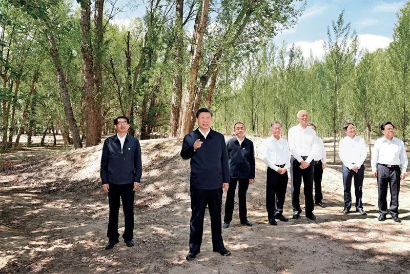 2023年6月5日至6日,中共中央總書(shū)記、國(guó)家主席、中央軍委主席習(xí)近平在內(nèi)蒙古巴彥淖爾考察,并主持召開(kāi)加強(qiáng)荒漠化綜合防治和推進(jìn)“三北”等重點(diǎn)生態(tài)工程建設(shè)座談會(huì)。這是6日上午,習(xí)近平在臨河區(qū)國(guó)營(yíng)新華林場(chǎng)考察。 新華社記者 謝環(huán)馳/攝