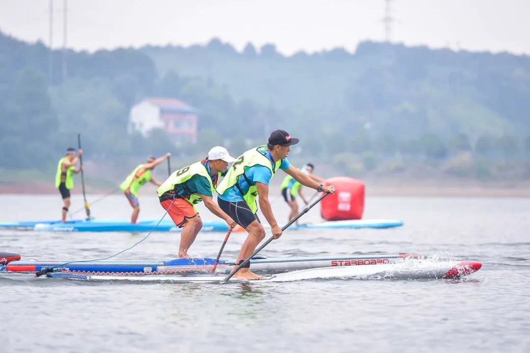 9月13日,2020魚(yú)形湖槳板邀請(qǐng)賽開(kāi)幕,全國(guó)21個(gè)省市(區(qū))的536名專業(yè)選手和業(yè)余玩家齊聚益陽(yáng)東部新區(qū)魚(yú)形湖劈波斬浪,共創(chuàng)全國(guó)紀(jì)錄。本次大賽是目前中國(guó)規(guī)模最大的槳板運(yùn)動(dòng)賽事,也是湖南首次舉辦全國(guó)性的槳板邀請(qǐng)賽。益陽(yáng)市市委常委、宣傳部長(zhǎng)胡立安宣布大賽開(kāi)幕,湖南日?qǐng)?bào)社黨組成員、社委、華聲在線股份有限公司總裁龔定名,益陽(yáng)市人大常委會(huì)副主任劉時(shí)貴,益陽(yáng)市人民政府副市長(zhǎng)黃東紅,益陽(yáng)市政協(xié)副主席曾斌,湖南省體育總會(huì)副主席王晃等領(lǐng)導(dǎo)出席開(kāi)幕式。