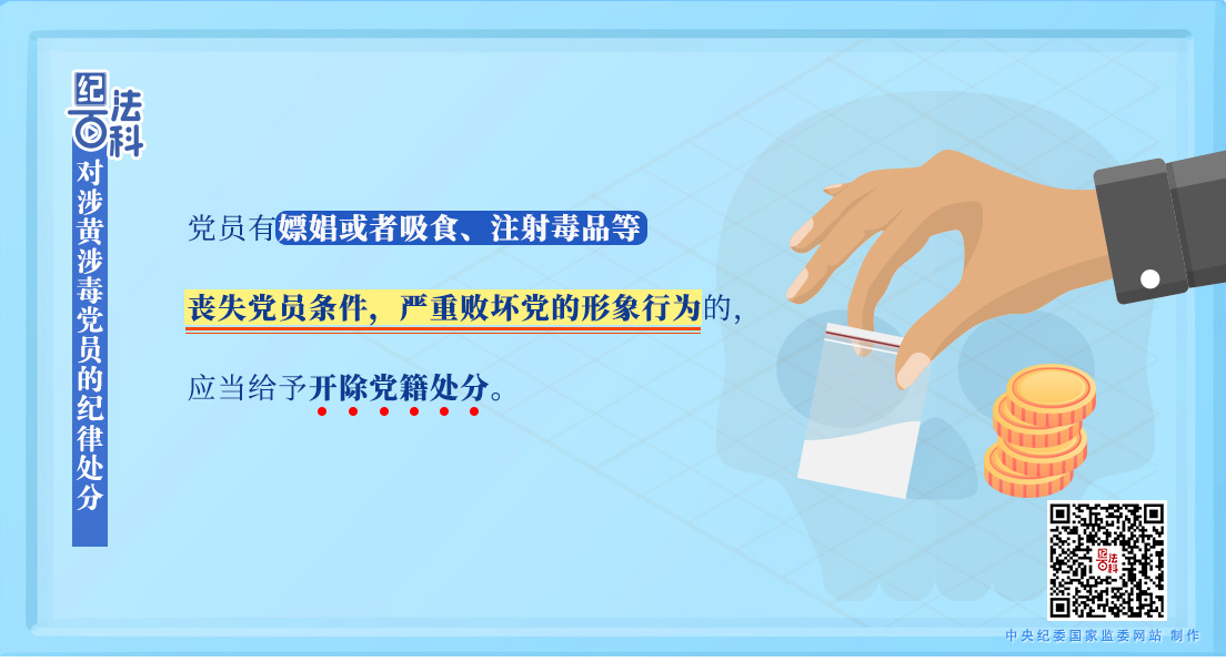 《中國共產(chǎn)黨紀律處分條例》第三十條第三款規(guī)定,黨員有嫖娼或者吸食、注射毒品等喪失黨員條件,嚴重敗壞黨的形象行為的,應當給予開除黨籍處分。