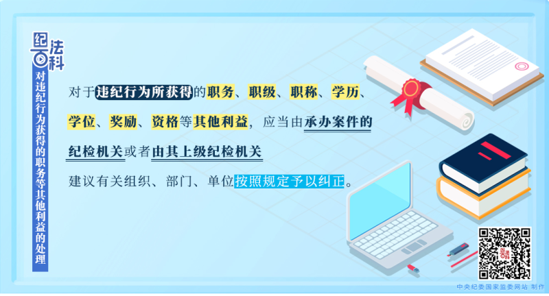 《中國共產(chǎn)黨紀律處分條例》第四十三條規(guī)定:對于違紀行為所獲得的職務(wù)、職級、職稱、學歷、學位、獎勵、資格等其他利益,應(yīng)當由承辦案件的紀檢機關(guān)或者由其上級紀檢機關(guān)建議有關(guān)組織、部門、單位按照規(guī)定予以糾正。