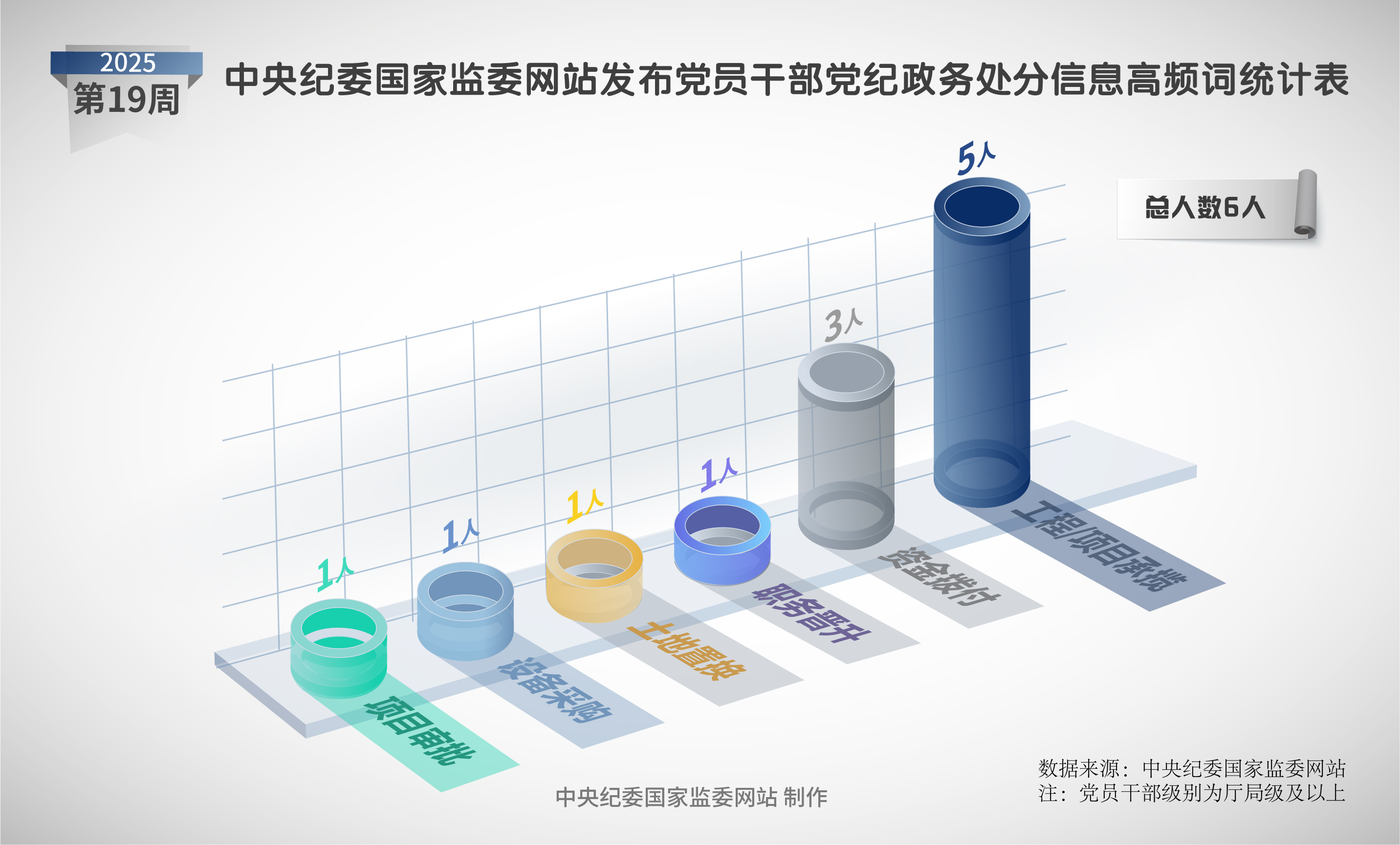 2025年第19周,在中央紀(jì)委國家監(jiān)委網(wǎng)站發(fā)布的6條黨紀(jì)政務(wù)處分通報(bào)中,“喪失理想信念”“不按規(guī)定報(bào)告?zhèn)人有關(guān)事項(xiàng)”“利用職務(wù)便利為他人謀利”“無視中央八項(xiàng)規(guī)定精神”“大搞權(quán)錢交易”是高頻詞。