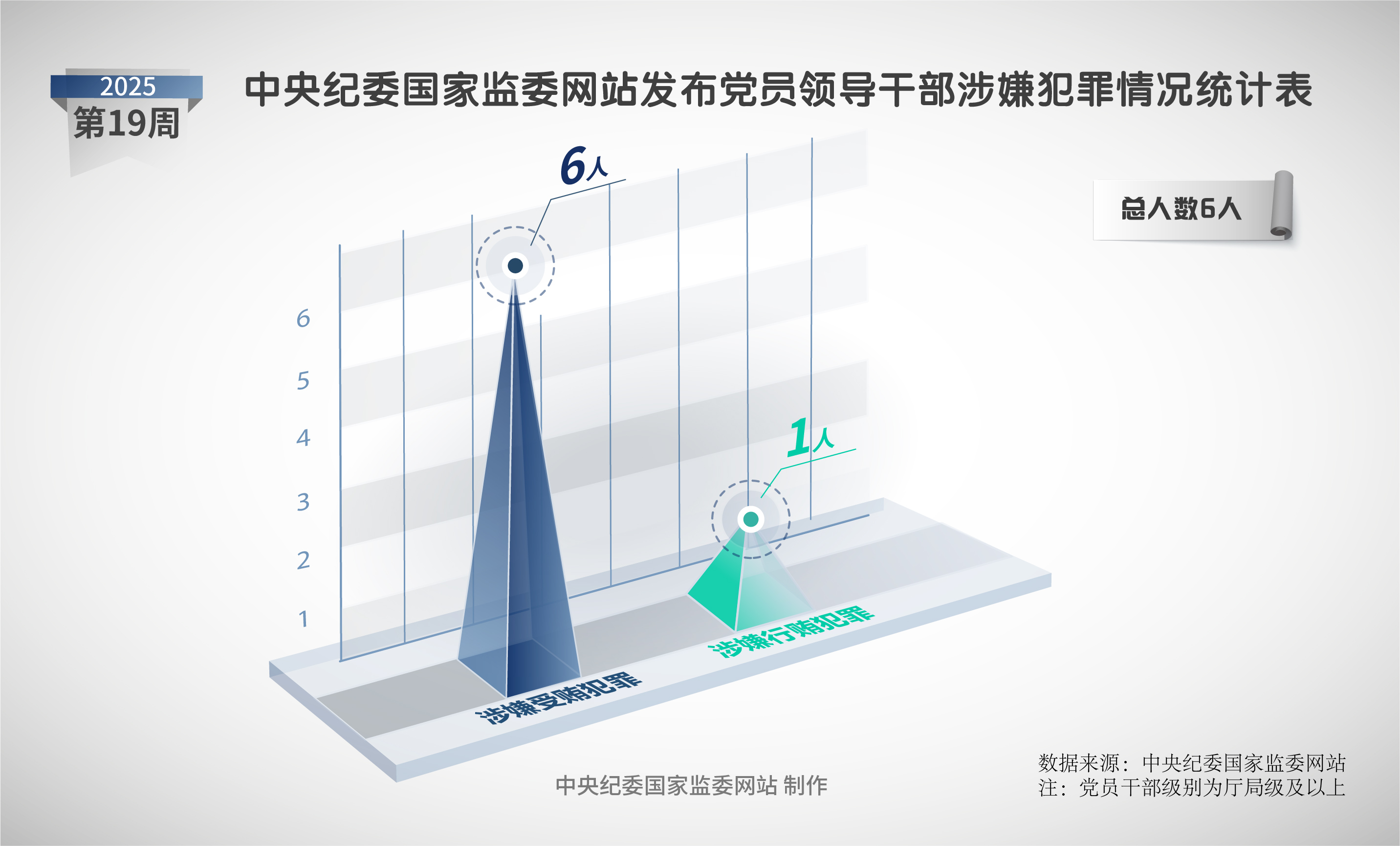 2025年第19周,中央紀(jì)委國家監(jiān)委網(wǎng)站共發(fā)布6條黨紀(jì)政務(wù)處分信息,均為省管干部。