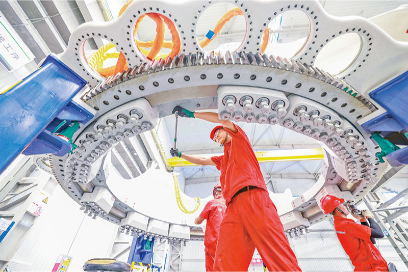 黨的二十屆三中全會強調(diào)要建設(shè)一流產(chǎn)業(yè)技術(shù)工人隊伍。產(chǎn)業(yè)工人是工人階級的主體力量,各級工會要更好團(tuán)結(jié)動員廣大職工為進(jìn)一步全面深化改革、推進(jìn)中國式現(xiàn)代化作貢獻(xiàn)。圖為2024年7月23日,河北省隆化縣一家風(fēng)電設(shè)備企業(yè)的工人在車間工作。 新華社發(fā) 李秀清/攝